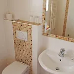 Az apartman fürdőszobája hajszárítóval, vendég piperecikkekkel és fürdőlepedőkkel felszerelt. Továbbá walk-in zuhanykabin és külön WC szintén elérhető.